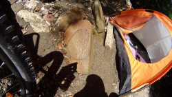 нет. Последствия потопа 18 июля (54 мм!) всё ещё видны — высохло слабо, но видно, что даже в абсолютный сушняк это будет не дорога, не тропа, и не трек, и не маршрут. «Дорога» эта представляет собой чередование участков с весёлыми играми для детей и взрослых под названиями «Попрыгай с валуна на валун в речном потоке», «Продерись через густо сплетённые заросли ежевики», «Почавкай болотной жижей по колено» и «Понедоумевай, с какого перепугу трек OSM идёт явно нигде — например, поперёк крутого заросшего склона». Квест «Пройди все препятствия, не потеряв самообладание, здоровье и вел». Но природа красивая, да. Имхо, эти места хороши для пеших отшельников — удалиться от людей и медитировать — но никак не для велосипедистов. Мерида пострадала от Вулана — много раз повторённая операция «смазка глубокой жидкой грязью / промывка водным потоком» привела к перманентному хрусту и поскрипыванию а-ля ржавая «Десна» 1980-го года выпуска. Даже мойка керхером не помогла. Очевидно, песок попал в какие-то вращающиеся части, понесу его к специалистам.