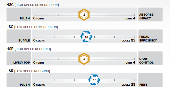 да толком не успел распробовать, в целом вниз едет очень мягко, не скажешь что всего 120мм сзади. Вверх конечно не хватает блокировки аморта, раскачка присутствует надо дальше колдовать с НСК.
