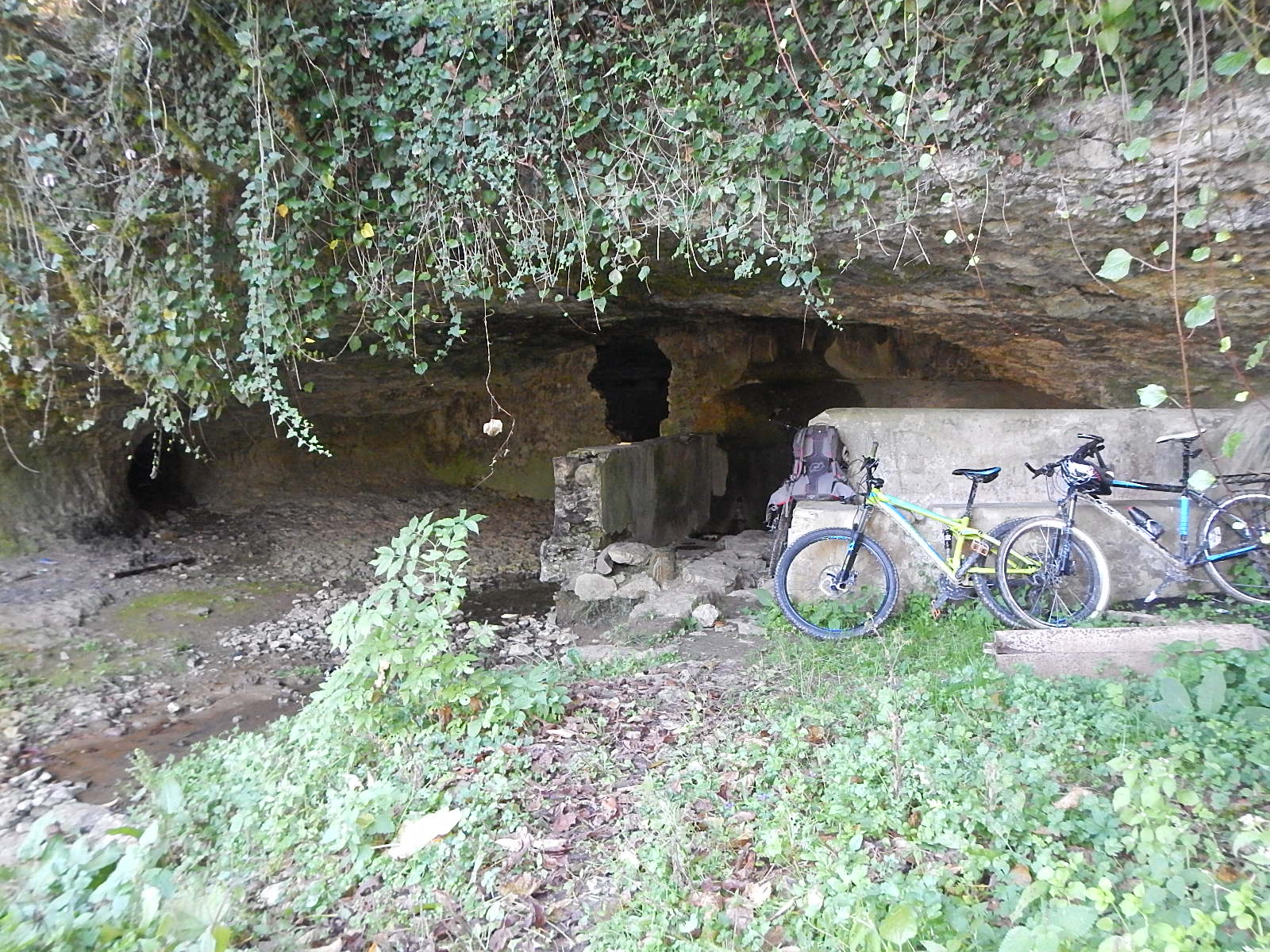 На самом входе, под этим навесом из скалы есть две рукотворные ванны (из камня и сверху оштукатуренные) и перед ними накопитель воды. Велики как раз прислонены к этим ваннам.