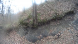 https://www.gpsies.com/map.do?fileId=bxcldgymytdkkixjВторая щель: подзаросла, с велом не очень. Но сверху вниз местами можно ехать. Больше в верхней её части. Там же — интересное место с крутым склоном щели, мостиком через неё и «Домом охотника». В 1км к западу от «Охотничьего дома». Такое впечатление, что этот «Дом охотника» специально спрятан подальше от людей — в уютной лощинке, закрытой с трёх сторон рельефом. Летом, наверно, особенно красиво. Внутри, как всегда в таких домах в наших горных лесах, удручающе — грубые грязные доски вместо кроватей, ржавая печь посередине. На стене висит аптечка, написано «пользуйтесь, но и пополняйте!», и лежат ампулы с новокаином.