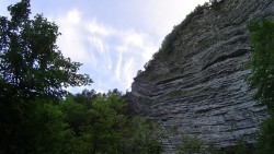 Отвесная стенка высотой метров 50. Идеальное место для самоубийц и парапланеристов