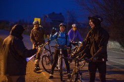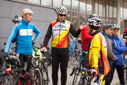 Окончательно подготовившись к бревету, участники готовятся к старту. Сергей главный организатор дает отмашку к старту