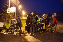 Остался на маршруте Еще один участник Петр, которого мы поехали искать две машины. Не сломленный одиночеством погодой и отсутствием переднего фонаря он проехал дистанцию за ,что ему респект.