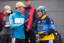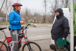 Вот и стартовали веломарафонцы покорять очередную дистанцию. Собравшись волонтерами на небольшой консилиум и обсуждение последних вопросов, спустя 20 мин после старта приехал ОН! Уничтожитель всех рекордов Вадим Ковалевский.