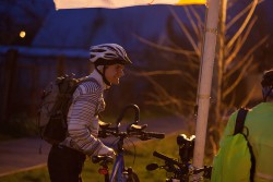 Остался на маршруте Еще один участник Петр, которого мы поехали искать две машины. Не сломленный одиночеством погодой и отсутствием переднего фонаря он проехал дистанцию за ,что ему респект.