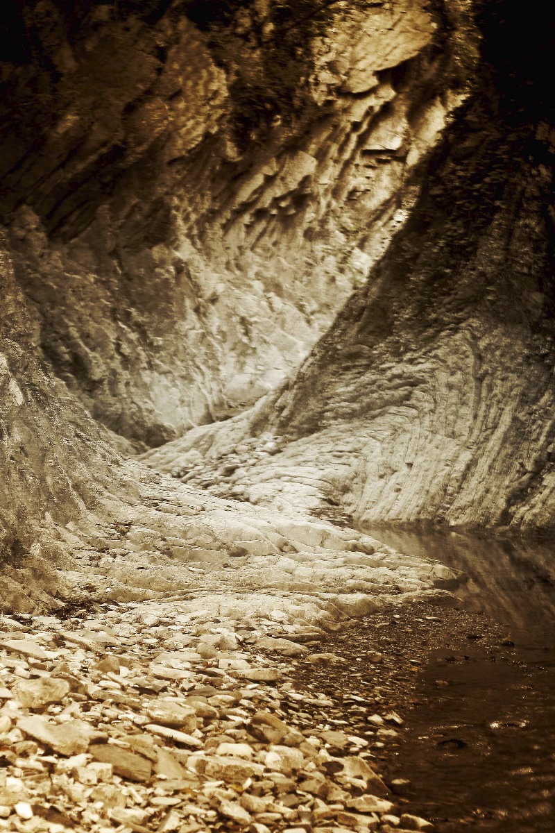 Река очень живописная, вдоль нее, почти до входа в каньон, петляет дорога, по которой можно с ветерком мчаться на ГАЗ-66:) Топать пешком лучше в резиновых сапогах или хороших трекинговых кроссовках. В каньоне встретили водопады слез, как в Абхазии по дороге на Риццу.