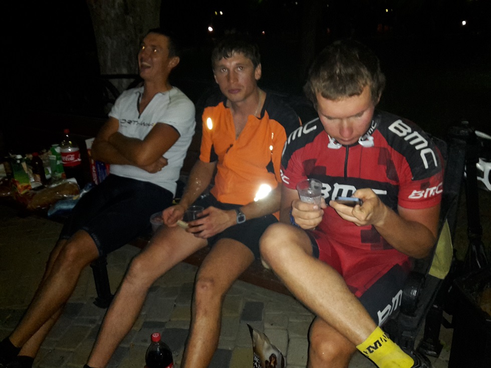 На КП мы приехали где-то ближе к трём часам ночи. Родные Алексея и он сам нас встретили. Эти чудесные люди пожертвовали законным отдыхом на выходных, чтобы встретить среди ночи незнакомых, грязных и плохо пахнущих велосипедистов, которые по своей глупости поехали марафон, не приносящий никакой пользы народному хозяйству и промышленности!