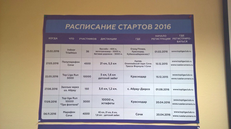 Из календаря соревнований я лично планию посетить все беговые мероприятия и триатлон за закрыми дверьми,хоть мне и не нравится короткий и искуственный вариант, есть конечно неудобства,то что полумарафон и марафон будут проходить в Сочи и туда нужно ехать,но зато там будет соответствующая атмосфера праздника. Да,и полумарафон на следующий день после нашего бревета "Северный", поэтому решать буду непосредственно перед мероприятиями,где и как участвовать. Вы же если планируете следующий сезон и какую то подготовку,то можете тоже учитывать эти старты и полноценно к ним готовиться,а начинать можно уже сейчас ;) Триатлонно-беговые лагеря - это возможность влиться в триатлон под руководством профессиональных тренеров,думаю даже после одного такого сбора вопросов о том ,что такое триатлон и как к нему готовиться у вас не останется.