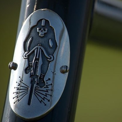 в качестве брелока или шильдика на раму.правда понадобиться немного денег на 3d модель и фрезерование восковой модели. если делать в бронзе с родированием- выйдет совсем недорого 8-)