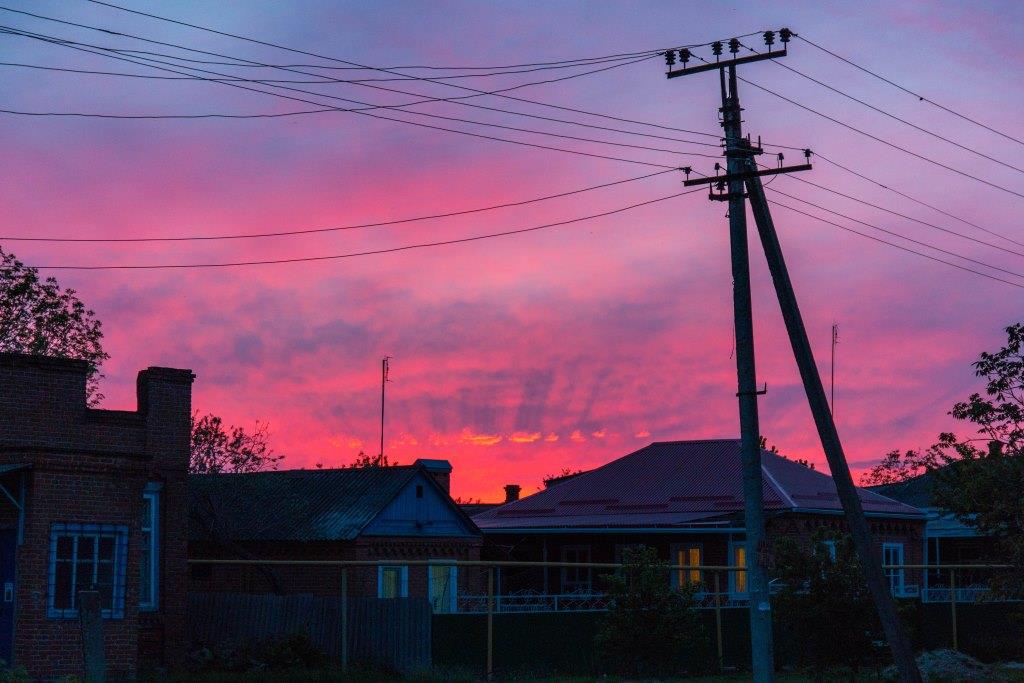 Сполохи заката застали нас в Пластуновской. Было красиво, и мой компаньон это отметил. Мы знали, что впереди нас ждёт ещё больше часа очень напряжённой работы, и отсутствие каких-либо видов, поэтому это была финальная награда за то, как мы прожили этот день.
