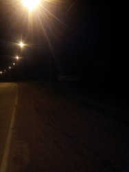 В итоге провел на КП около получаса и выехал как раз когда спустились сумерки и включив фонари поехал в ночь. Временами расстраивала мысль,что ехать придется все темное время суток,что я не очень люблю.Прошло же на удивление хорошо, практически не напрягало,просто ехал и ехал. Мешало навигации, километраж на велокомпьютере не подсвечен,как и легегда), Высматривал проезжая где нибудь под фонарями,сколько км и когда поворачивать. Порадовали по традиции 15 км дороги с трещинами,на которых чуть не оставил колеса в каких то ямах, гравийка же после дождя была укатана,только камни торчали,так что лучше чем на той же 300ке было.