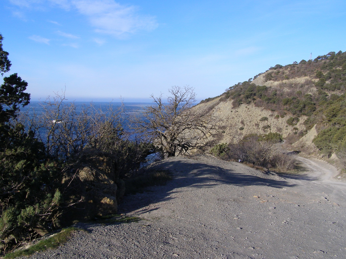 Катнул-таки на следующий день по маршруту санаторий Энергетик(Абрау)-Сукко.Весьма ветренно и холодно.Дорога возле озера на г.Кобыла затоплена, что-то вроде болота.Со стороны Анапы лежит снежок и всё обледенелое,фоткать желания особого не было,не май месяц.В сезон от Малого Утриша и на длинный подъём к г.Кобыла будет знатный говномес из щебня,грязи и песка.