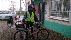 После поворота за Северской на Львовское, увидел впереди велосипедиста. Подумал, что это Калмык Женя. Возрадовался, т.к. одному как то "поминать" скучно...а на миру, как известно...