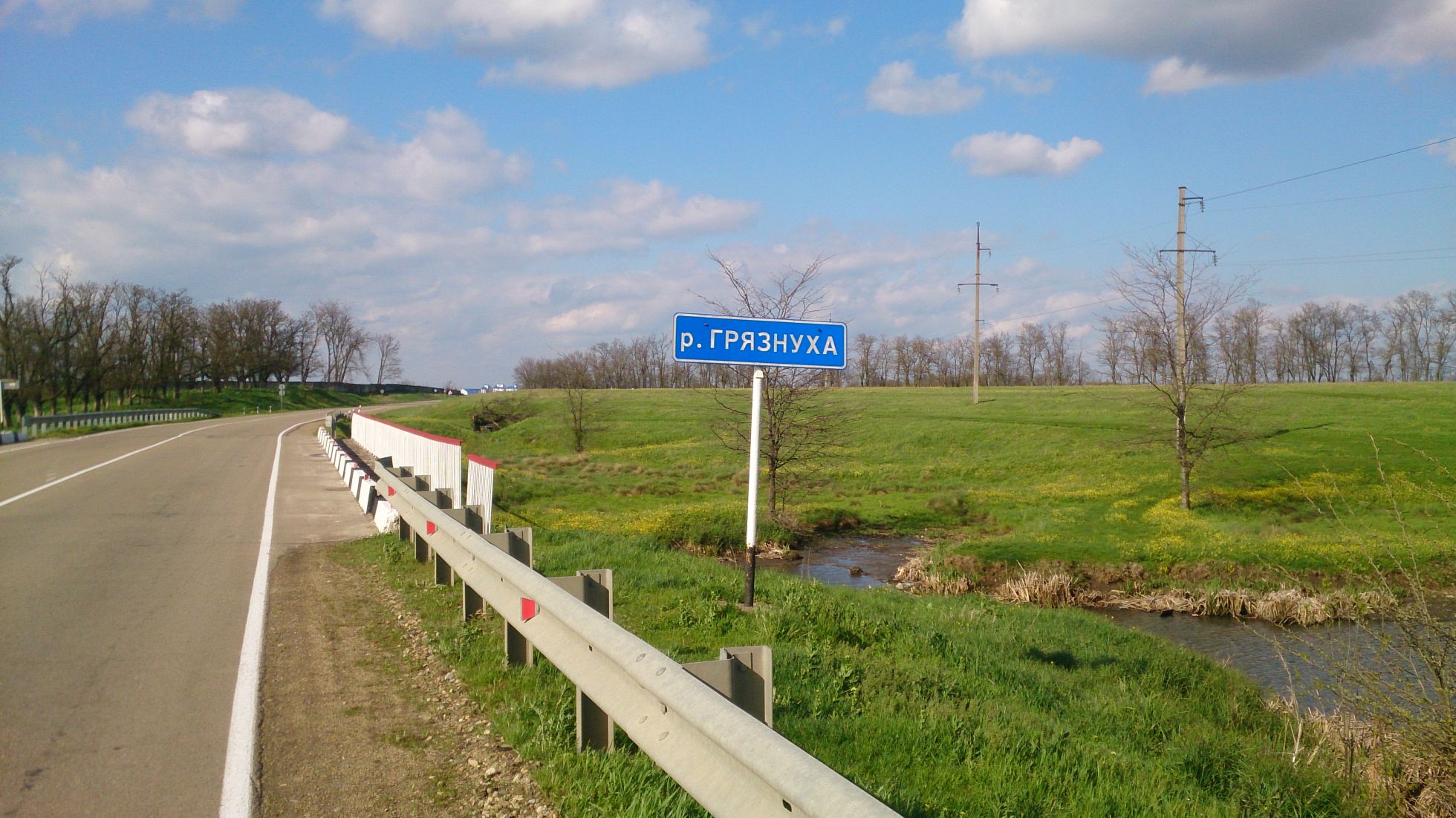 Похлебав борща, помчался на Курганинск. На въезде в город понравились виды реки Лаба.