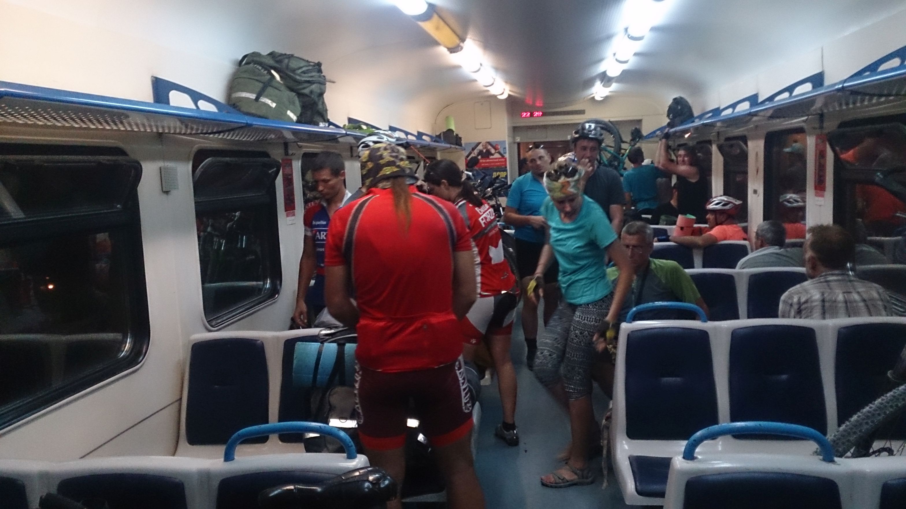 В электричке нас было много и разных велогрупп. Почти весь вагон был наш.