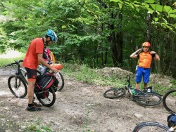 День второй. Попрощавшись с Андреем, который изначально собирался возвращаться своим ходом в Горячий Ключ, двинули дальше. Первый перевал мне дико понравился. Были красивые виды, довольно пологий заезд и афигенный спуск-серпантин по сосновому лесу. К хвойным у меня особая любовь, поэтому это был реально очень вдохновляющий участок )) Дальше подъемы стали сложнее, и из-за уклона, и из-за покрытия. Организм за 5-6 часов сна не успел восстановиться и начинал давать сбои, силы стремительно покидали. На одном из подъемов Лена, наверно видя мое плачевное положение, помогала закатывать вел. На другом - Витя забрал моего тяжеленного коня, а мне отдал своего. 10 кг после моих 16-18 оказались просто пушинкой. Кажется после этого подъема я поняла, что дальнейшие перевалы могу не осилить, по крайней мере к электричке мы точно не успеем. Плюс начали болеть колени. Витя поговорил с Димой и было решено выезжать на трассу. После Джанхота был еще один бонус: снова серпантин по соснам, с совсем не большим набором высоты. Ну а дальше двигали асфальтом... Не люблю трассы, тем более загруженные, было обидно, что я поломала наполеоновские планы, и пропускаем интересные места, но организм бы просто не вытянул.