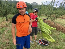 В первый день после Мирного пошла лесовозная дорога, но погода была на нашей стороне и этот участок прошли без дождя. Грязи есть, местами приходилось идти, и вел, и мы сами скоро покрылись слоем этой грязи, хорошо хоть не была на столько густой, чтобы забиваться и стопорить колеса. Когда мы уже почти-почти выехали на гравийку - полил дождь стеной. Это было очень в тему ))) Убил сразу двух зайцев: поднял настроение и отмыл )) Дополнительными ништяками стали инжир, яблоки и сливы. Чуть недоспелые, но после тяжелой дороги они были невероятно вкусными. Под Архипо-Осиповкой отмылись в речке и заселились в гостевой дом. После ужина съездили к морю. Полюбовались большими волнами и поехали готовиться ко сну.