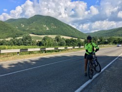 День второй. Попрощавшись с Андреем, который изначально собирался возвращаться своим ходом в Горячий Ключ, двинули дальше. Первый перевал мне дико понравился. Были красивые виды, довольно пологий заезд и афигенный спуск-серпантин по сосновому лесу. К хвойным у меня особая любовь, поэтому это был реально очень вдохновляющий участок )) Дальше подъемы стали сложнее, и из-за уклона, и из-за покрытия. Организм за 5-6 часов сна не успел восстановиться и начинал давать сбои, силы стремительно покидали. На одном из подъемов Лена, наверно видя мое плачевное положение, помогала закатывать вел. На другом - Витя забрал моего тяжеленного коня, а мне отдал своего. 10 кг после моих 16-18 оказались просто пушинкой. Кажется после этого подъема я поняла, что дальнейшие перевалы могу не осилить, по крайней мере к электричке мы точно не успеем. Плюс начали болеть колени. Витя поговорил с Димой и было решено выезжать на трассу. После Джанхота был еще один бонус: снова серпантин по соснам, с совсем не большим набором высоты. Ну а дальше двигали асфальтом... Не люблю трассы, тем более загруженные, было обидно, что я поломала наполеоновские планы, и пропускаем интересные места, но организм бы просто не вытянул.