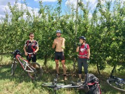 В первый день после Мирного пошла лесовозная дорога, но погода была на нашей стороне и этот участок прошли без дождя. Грязи есть, местами приходилось идти, и вел, и мы сами скоро покрылись слоем этой грязи, хорошо хоть не была на столько густой, чтобы забиваться и стопорить колеса. Когда мы уже почти-почти выехали на гравийку - полил дождь стеной. Это было очень в тему ))) Убил сразу двух зайцев: поднял настроение и отмыл )) Дополнительными ништяками стали инжир, яблоки и сливы. Чуть недоспелые, но после тяжелой дороги они были невероятно вкусными. Под Архипо-Осиповкой отмылись в речке и заселились в гостевой дом. После ужина съездили к морю. Полюбовались большими волнами и поехали готовиться ко сну.