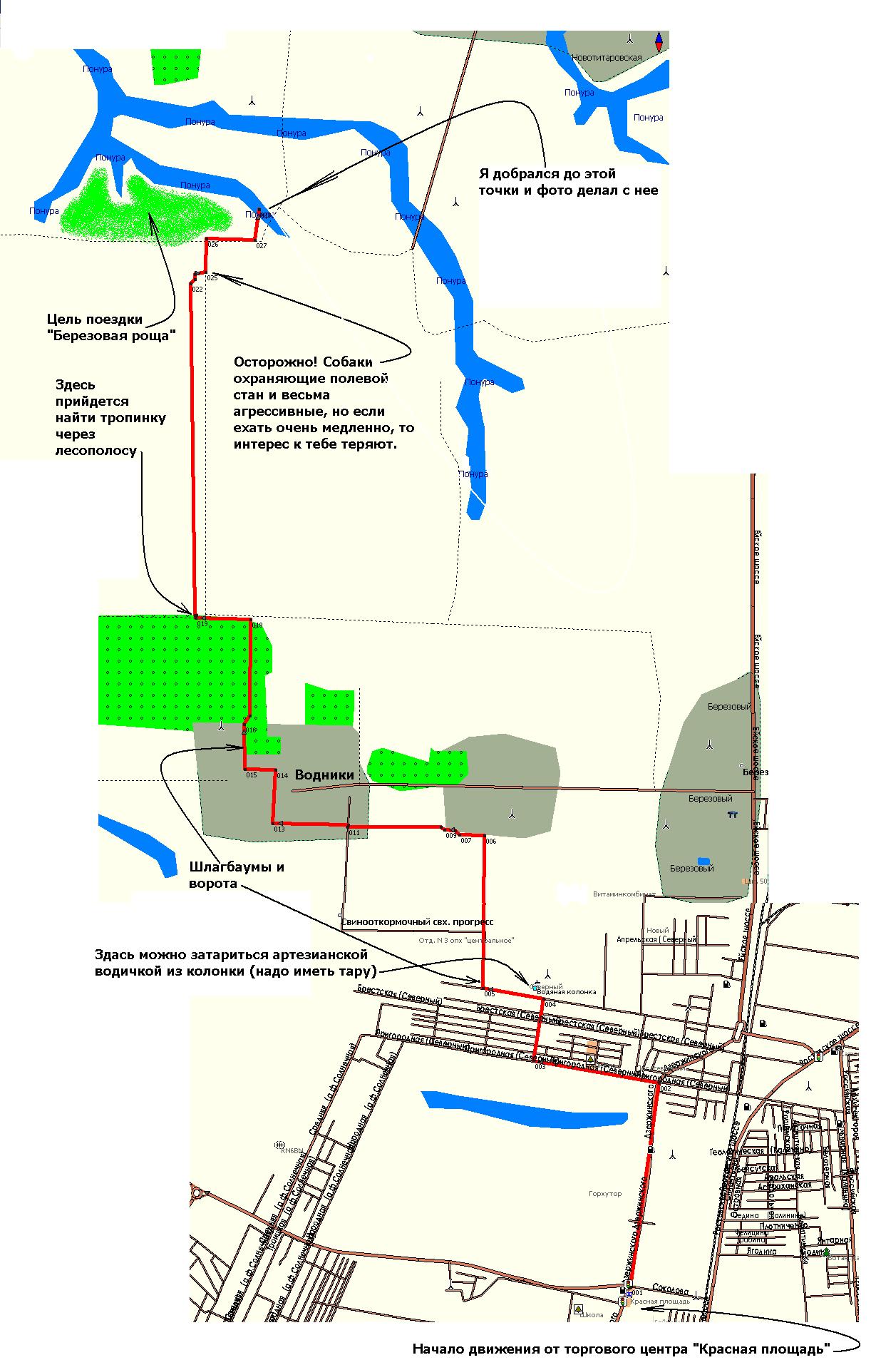 Подходы к реке видимо есть, но некогда было их искать. Поэтому воду с близкого растояния не удалось рассмотреть и потрогать. Трек в графическом виде с пояснениями прикрепляю (см.фото)