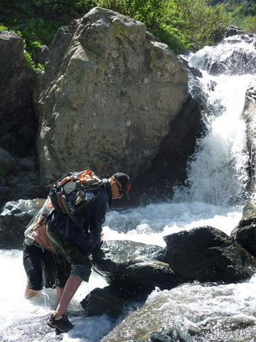 Первое препятствие на пути - каменный завал реки, вдоль которой мы идем.