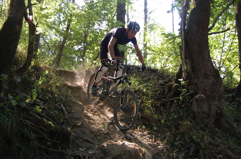 На второй день мы решили в меру сил проехать по трассе. Пошли в обратном направлении, срезая в некоторых местах. О самой трассе деталей рассказывать не буду, тут уже до соревнований осталось немного, сами узнаете или организаторы расскажут, если захотят ;-) Самый красивый участок – от КП3 до финиша. На трассе есть на что посмотреть, красивые места и луга вокруг, есть хорошие подъемы (даже слишком для нашего уровня), сложные участки трассы, и отличные затяжные спуски (где совершенно ясно, что дисковые тормоза моего Avalanche 2.0 Disk 2006 полная хрень: перегреваются и не тормозят. Вода на них сразу кипит если брызнуть). Возможно за счет того, что мы ехали против движения, и из-за неокончательной разметки трассы в эти выходные, мы несколько раз промахивались, что было по-своему забавно :)