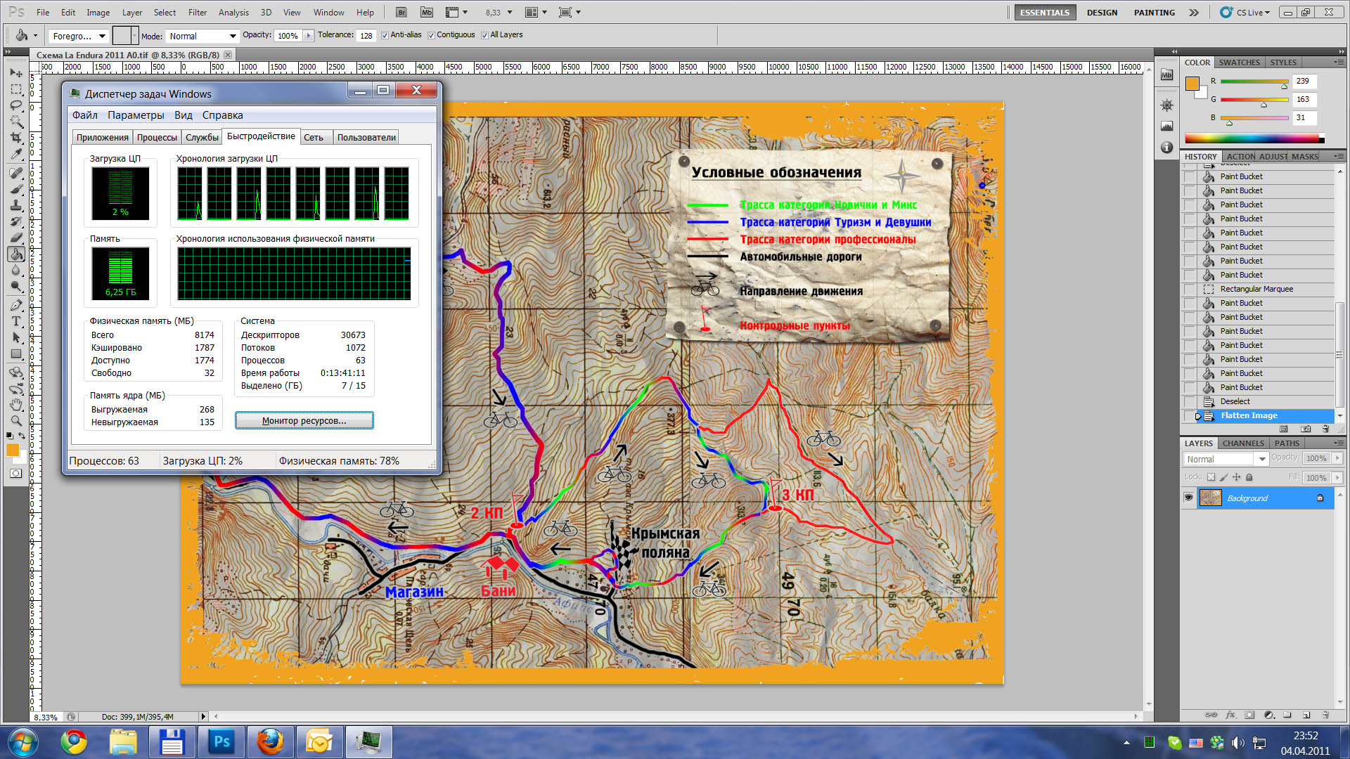 ОФФ: Сегодня пришёл запрос из типографии. Им чтобы напечатать карту, нужен tiff размером А0 и 300dpi! :sigh: Иначе они напечатать ну не могут... Пришлось рипануть, потом на мониторчике клавы заметил, что 3/4 памяти занято! А как быть, если бы было 4гб, как у всех?? :blink: